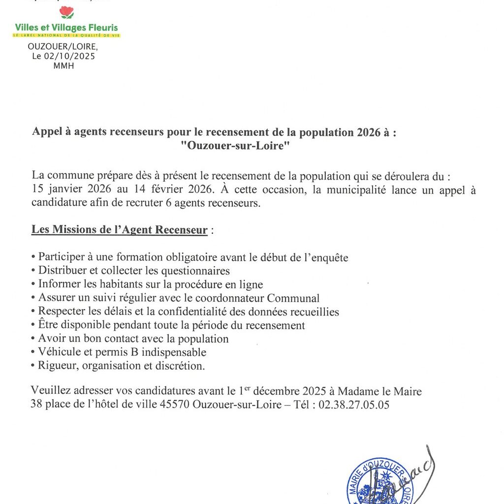 Pour le recensement de la population 2026 à Ouzouer-sur-Loire