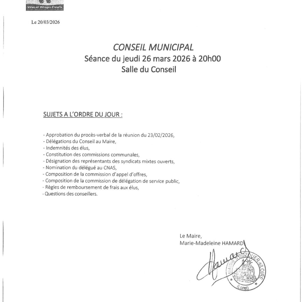 DATE DU PROCHAIN CONSEIL MUNICIPAL
