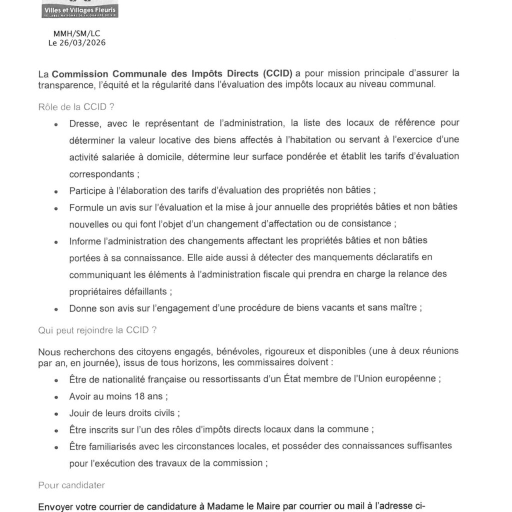 • Candidature Commission Communale des Impôts Directs (CCID)