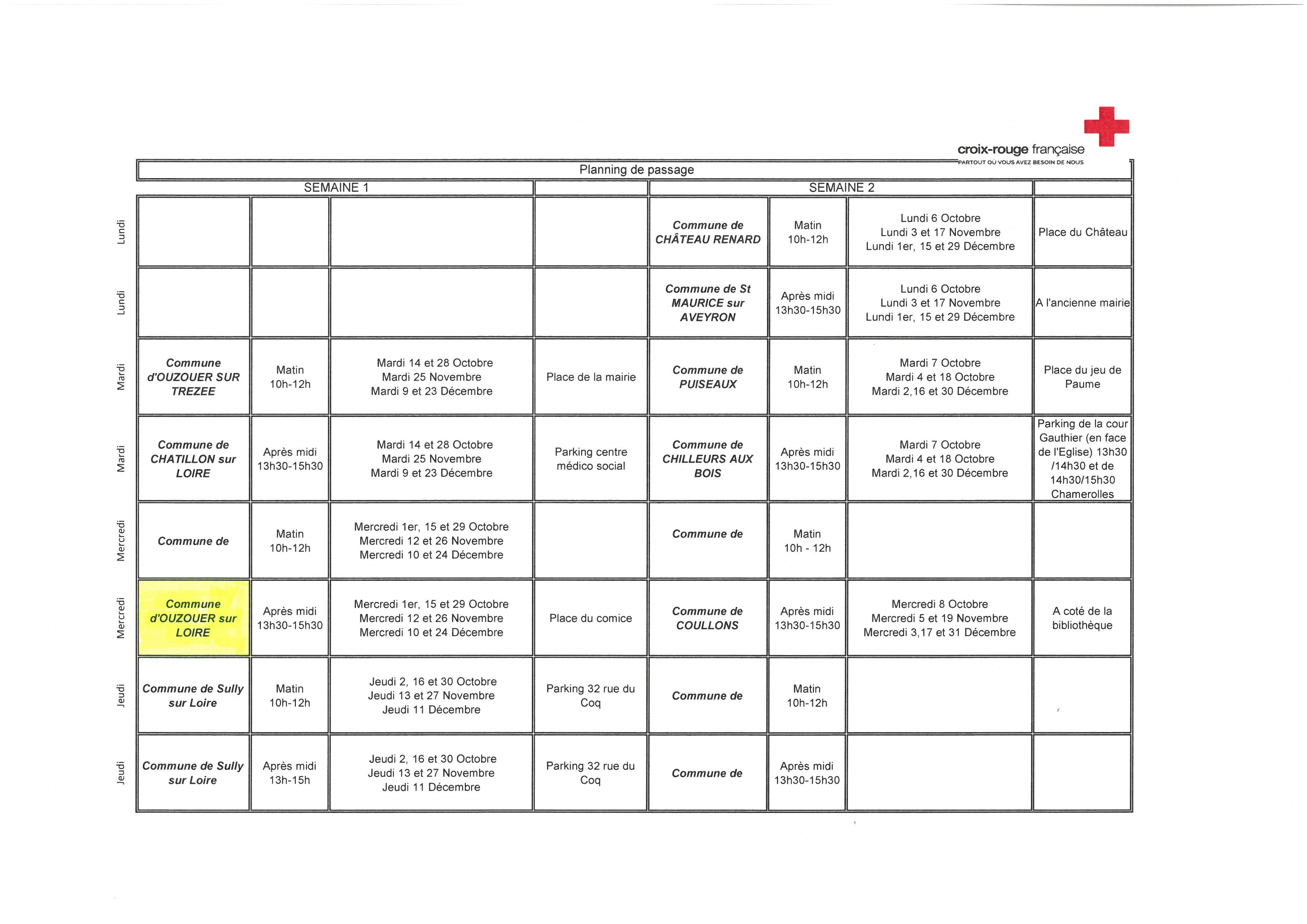Planning de la Croix Rouge Française : De Octobre à Décembre 2025